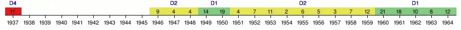 Le club jouera également en deuxième division de 1946 à 1948, de 1951 à 1959, de 1973 à 1976 et de 1989 à 1991 et sera vice-champion en 1976.