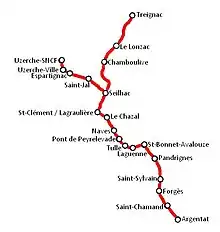 | Villes desservies | Tulle - Seilhac - Uzerche - Argentat - Treignac | |||||||||||||||||||||||||||||||||||||||||||||||||||||||||||||||||||||||||||||||||||||||||||||||||||||||||||||||||||||||||||||||||||||||||||||||||||||||||||||||||||||||||||||||||||||||||||||||||||||||||||||||||||||||||||||||||||||||||||