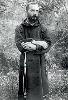 Padre Pio, né Francesco Forgione le à Pietrelcina (province de Bénévent, Campanie, Italie) et mort le à San Giovanni Rotondo (province de Foggia, Pouilles, Italie), est un prêtre capucin italien. Déclaré saint par l'Église catholique sous le nom de saint Pio de Pietrelcina, il est fêté le 23 septembre. Il est un des saints les plus célèbres du XXe siècle, connu pour avoir été marqué de stigmates et d'autres phénomènes mystiques.