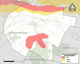 Le retrait-gonflement des sols argileux est susceptible d'engendrer des dommages importants aux bâtiments en cas d’alternance de périodes de sécheresse et de pluie. 20,4 % de la superficie communale est en aléa moyen ou fort (54,2 % au niveau départemental et 48,5 % au niveau national). Sur les 220 bâtiments dénombrés sur la commune en 2019, 54 sont en aléa moyen ou fort, soit 25 %, à comparer aux 57 % au niveau départemental et 54 % au niveau national. Une cartographie de l'exposition du territoire national au retrait gonflement des sols argileux est disponible sur le site du BRGM[15],[Carte 2].