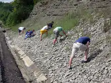 - la prospection et les fouilles sur le terrain : c'est la partie la plus ardue, la plus physique, et administrativement compliquée : après obtention de tous les accords nécessaires, du matériel et des fonds, après le transport sur site, il s'agit de quadriller, mesurer, photographier, cartographier, extraire, préserver, emballer les fossiles, tamiser le sédiment, classer les trouvailles, les conditionner pour leur transport… ;