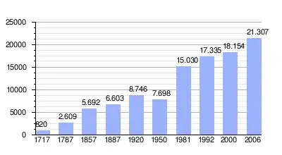 1717-1981: population de fait ; 1990- : population de droit