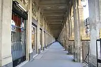 - En 1827, la magnifique galerie d'Orléans à l'emplacement de la vétuste galerie de Bois, ancien Camp des Tartares, qui venait d’être détruite par un incendie. Achevée en 1829, elle présentait côté cour et côté jardin une ordonnance uniforme de colonnes doriques supportant une plate-bande horizontale, formant ainsi deux promenades couvertes. La partie centrale était occupée par une verrière combinant le fer et le verre d'une longueur de 70 m pour une portée de 8,50 m. Les 40 nouvelles boutiques avaient une vitrine sur le passage et une ouvrant sur l'extérieur. C’était la plus large et la plus lumineuse des galeries commerciales de l’époque.
