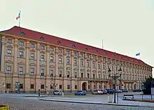 Le palais, le plus grand des palais baroques de Prague, est depuis 1934 le siège du ministère des Affaires étrangères. À compter de , à la suite de l'invasion allemande violant les accords de Munich, il accueille le siège du protectorat de Bohême-Moravie, et notamment les bureaux du Reichsprotektor en français : « protecteur (ou gouverneur) » Konstantin von Neurath de 1938 à 1943 et du Stellvertretender Reichsprotektor en français : « vice-protecteur (ou vice-gouverneur) » Reinhard Heydrich de 1941 à 1942, ainsi que de leurs successeurs respectifs jusqu'en 1945.