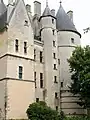 Façade intérieure du Palais Jacques-Cœur et tour d'escalier principal avec ses allèges décorées[1]. | ||||