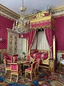 Le , par un décret daté de Finckenstein, Napoléon Ier ordonne la remise en état du palais. L'architecte Louis-Martin Berthault est chargé de la direction des travaux. Ceux-ci consistent en la mise hors d'eau du bâtiment et en de considérables travaux de réaménagement intérieur et de décoration[15]. Une grande galerie (galerie de Bal) est notamment créée dans une aile de la cour des Cuisines à partir de 1809[16]. Le jardin est entièrement replanté et une continuité est créée avec la forêt, le mur d'enceinte étant remplacé par une grille. Une pompe à feu remplaçant une précédente installation de 1786 est construite en 1810 sur le bord de l'Oise pour alimenter en eau le château.