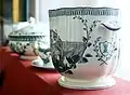 Le service est commandé en Angleterre au céramiste Josiah Wedgwood par Catherine II en 1770 spécialement pour le palais Tchesmé, qui s'appelait encore Palais du marécage des grenouilles.(Palais Kikerikeksenski en finnois). Le palais a été construit sur un marais appelé marais des grenouilles et c'est la raison pour laquelle sur chacune des 952 pièces du service est représentée une grenouille. Le service est réalisé en faïence de couleur crème, caractéristique des productions de Josiah Wedgwood. Les 1244 paysages reproduits sur les pièces sont des vues historiques de la vieille Angleterre. La variété des formes, simples et paisibles, la technique parfaite de réalisation, la richesse de la gamme des coloris rend ce service unique. Il fait aujourd'hui partie de la collection de céramiques anglaises de l'Ermitage.