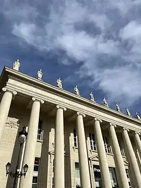 En , un programme de restauration est annoncé consistant notamment à replacer de nouvelles copies des statues détruites lors de la Seconde Guerre mondiale sur la partie supérieure de la façade du palais, côté place de la Bourse[13]. En , ces dix statues représentant respectivement des allégories de Nantes, de la Loire, de quatre continents (Asie, Afrique, Europe et Amérique), de l'Astronomie, des Beaux-Arts, de la Prudence et de l'Abondance sont replacées sur la façade[15].