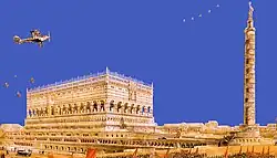 - couronner la colonne avec une faucille et un marteau nimbés de lumière ;