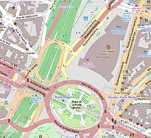 Après la destruction des fortifications vers 1920, ce terrain en friche servait à l’installation de parcs d’attraction estivaux temporaires. Il abrita même après la guerre quelques bâtiments d’hébergement de ministères.