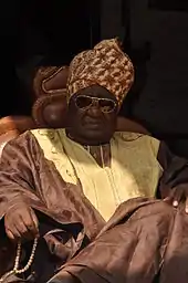Le sultan Ibrahim Mbomba Njoya dans la cour du palais