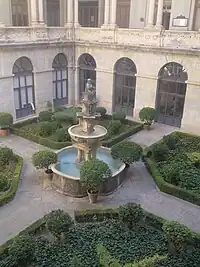 Au centre de la cour se trouve une fontaine, autour de laquelle est disposé un jardin. La fontaine provient de l'ancien Couvent de Saint-Domingue de la Guardia de Jaén, elle a été donnée en 1955 par ses propriétaires à l'Institut d'Études Giennenses pour qu'elle occupe la cour du Musée Provincial, jusqu'à ce qu'elle soit installée dans son emplacement actuel en 1961 ; elle est datée de 1577.