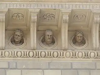 L'architecte Giuliano da Maiano décora la corniche de la façade à la manière classique, de bustes d'empereurs romains et celui de Dante Alighieri.