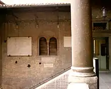 L'entrée principale se trouve sous les arcades de la Piazza Grande : c’est au premier arc du portique à l'est que s’ouvre le grand escalier qui mène à l'entrée de la loggia d'époque Renaissance, qui mène à l’hôtel de ville.