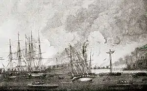 Profitant du débarquement des Anglais à Java en 1811, durant les guerres napoléoniennes, le sultan Badaruddin attaque la garnison hollandaise de sa ville. En réaction, les Anglais attaquent Palembang de leur base à Bengkulu, mettent le palais à sac et destituent le sultan. En 1812, le sultan doit céder l'île de Bangka aux Anglais.