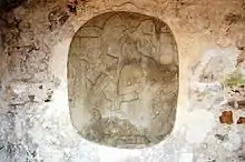 Les murs de la crypte sont décorés de neuf personnages en stuc tenant chacun un sceptre K'awiil (en) et qu'on identifie généralement à des ancêtres royaux, notamment Yoh Ik'nal que l'on distingue grâce à sa longue jupe[18].