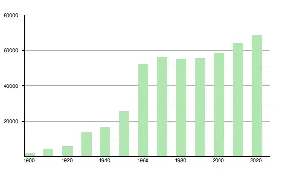 | 1960 | 52 287 | ▲ +105,25 % | |