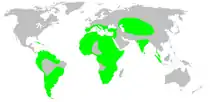 Les espèces de cette famille se rencontrent en Afrique, dans le Sud de l'Amérique, dans le Sud de l'Asie et en Europe du Sud[1].