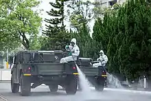 - (en) Lawrence Chung, « Coronavirus: Taiwan deploys chemical warfare team at airport to disinfect 361 citizens repatriated from Wuhan », South China Morning Post, (consulté le ).