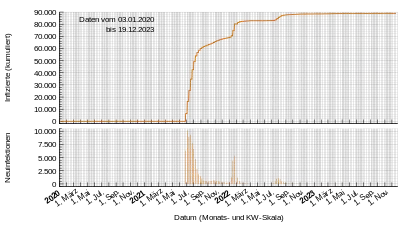 Le , les trois premiers cas dans le pays ont été confirmés[2].