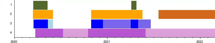 | Couvre-feu | 19 h | 21 h | 23 h | Fin (avancé au 20 juin)[131] |