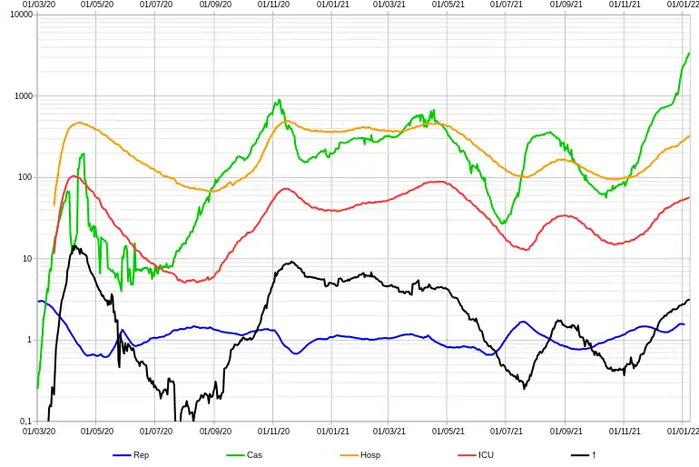 Le début de l'année est marqué également par des cas de contaminations par des mutations du virus : au , dix-neuf cas de contamination par le variant alpha dite alors « britannique » ont été confirmés[107]. En quelques semaines, la part du variant alpha atteint une infection sur quatre[108].
