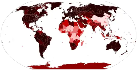 - > 1 décès pour 1 000 habitants (> 1 000 décès pour 1 million d'habitants)