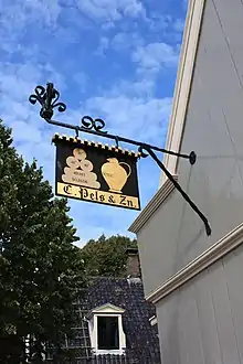 Panneau suspendu signalant un magasin dans le Waterland néerlandais.