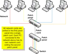 Diagramme d'un réseau Ethernet fonctionnant via un panneau de brassage.