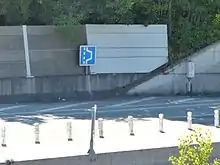 La signalisation des emplacements d’arrêt d’urgence ne comportant pas de poste d’appel d’urgence est obligatoire. Elle doit être assurée au moyen du panneau C8. Il doit être implanté en signalisation de position[IISR 2].
