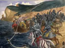 Pantagruel enjoint au prisonnier de retourner dans son campement en lui faisant croire qu’il dispose d’une immense armée et lui offre une boîte pleine d’euphorbe et de baies de Cnide (les « grains de Coccognide »[MH 22]) confites dans l’eau de vie. Les soldats ennemis éprouvent une soif irrésistible en les mangeant et se soûlent copieusement. Le lendemain, Carpalim pénètre dans le camp et met le feu aux poudres. Les ennemis s’éveillent hagards et Pantagruel verse du sel dans leur bouche pour accroître leur soif. Pris d’une envie pressante à cause des drogues de Panurge, le géant inonde les alentours de son urine. Loup Garou affronte Pantagruel en combat singulier. Face à cet adversaire armé d’une massue enchantée, ce dernier, muni du mât de son bateau, prie et se recommande à Dieu. Un moment mis en difficulté, il arrive à faire tomber Loup-Garou, se saisit de ses jambes, fauche les géants venus à son secours tandis que ses compagnons les égorgent. Ce duel héroï-comique représente une victoire du bien contre une incarnation du mal, parodiant un motif épique[20]. Rabelais s'est sans doute inspiré de l’affrontement entre Roland et le géant Ferragus narré dans la chronique du Pseudo-Turpin[MH 23].
