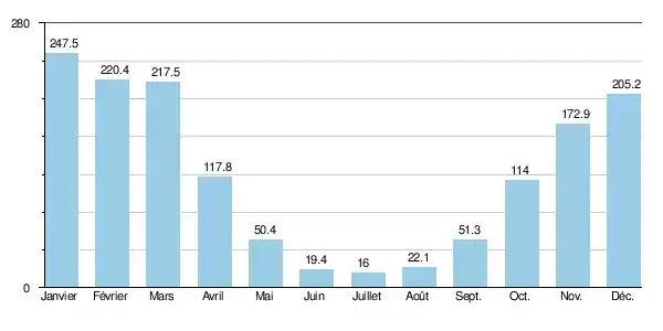 La température moyenne y est de 25 °C, une amplitude de 0 à 40 °C.