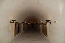 La crypte couvre toute la surface de l'édifice. En effet, elle est constituée de quatre galeries, chacune sous chacun des bras de la nef. Cependant, elle n'est pas véritablement enterrée comme une cave puisque des fenêtres, en haut de chaque galerie, s'ouvrent sur l'extérieur.