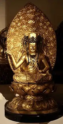 Un groupe de statues célèbre, le mandala situé dans le temple Tō-ji à Kyōto, présente certains des principaux éléments et structures du panthéon bouddhiste. Le mandala a été réalisé au IXe siècle et offert à Kūkai[8]. Émile Guimet en apporta une copie à Paris, en France, à la fin du XIXe siècle, copie qui se trouve maintenant au musée Guimet[8].