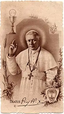 Giuseppe Melchiorre Sarto, né le à Riese en Vénétie (alors dans le royaume de Lombardie-Vénétie, maintenant Riese Pie X, dans la province de Trévise, en Italie) et mort le à Rome, est le 257e pape de l’Église catholique sous le nom de Pie X (en latin : Pius X, en italien : Pio X) du à sa mort.