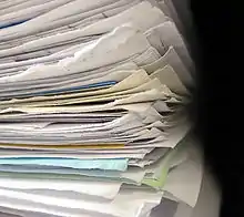 L'expression « les papiers » désigne par métonymie le travail administratif.