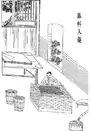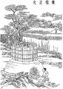 - Pilonnage: Dans beaucoup de localités du Sichuan, un pilon hydraulique en pierre servait à écraser les fibres et à former une pulpe consistante. Lorsque les fibres sont convenablement entremêlées, le papier est plus solide.
