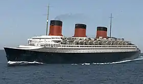 Les États-Unis sont pour leur part fortement impressionnés par les états de service des deux Queen durant la guerre. Désirant un navire fiable et rapide en cas de guerre contre l'URSS, ils font construire en 1952 le United States, qui bat tous les records de vitesse établis et détient depuis lors le Ruban bleu[65]. L'Italie construit peu après le prestigieux Andrea Doria qui fait naufrage en 1956[66].