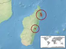 Aire de répartition de l'espèce Paracontias holomelas selon l'UICN (consulté le ).