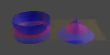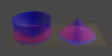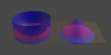 - est le « bol », c'est un cylindre de rayon 1 et de hauteur 1, auquel on a soustrait une demi-sphère de rayon 1, concentrique à la face supérieure.