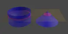 Lorsque le plan de coup arrive au sommet des volumes (), est réduit à un cercle, tandis que est réduit à un point (le sommet du cône). On est alors face à une situation paradoxale : un cercle serait égal à un seul point.