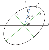 Une onde plane monochromatique est caractérisée par son vecteur d'onde et les amplitudes complexes de son champ électrique et décrit dans une base . Une autre possibilité est de préciser son vecteur d'onde, la phase et l'état de polarisation où est la courbe dessinée par le champ électrique dans un plan fixe. Les états de polarisation les plus courants sont les polarisations rectiligne et circulaire, qui sont des cas particuliers de l'état général qui est une ellipse.