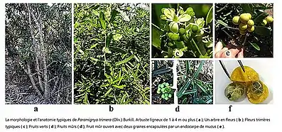 Armstrong (1975) a admis Paramignya trimera (Oliver) Burkill dans la flore australienne, selon lui elle n'était connue «que de les montagnes méridionale du nord de l'Australie-Occidentale»[8]. L'apport de Burkill (1931) est d'avoir renommé Atalantia trimera Oliv. en Paramignya trimera: il écrit «La plus petite fleur de la série est une espèce qui porte le nom d'Atalantia trimera. Oliv. Il a trois sépales et trois pétales; six étamines et des fruits caractéristiques de Paramignya. Il devrait porter le nom de Paramignya trimera»[9].