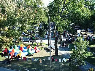 Le parc, malgré sa taille, est le lieu de plusieurs événements récurrents — fête nationale de la Saint-Jean, rencontres interethniques, manifestations de soutien aux personnes sans-statut — dans cet arrondissement parmi les plus multi-ethniques au Canada.