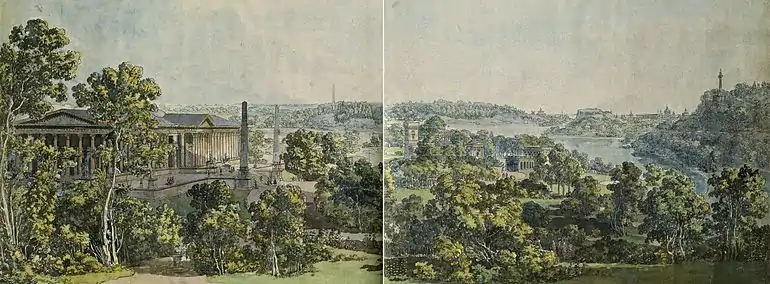 Panorama – le parc tel qu'on l'envisageait à la fin du XVIIIe siècle