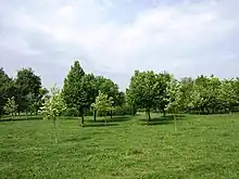 Un sentier au milieu de prairies arborées dans le parc Izvor. | |