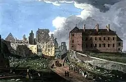 Une vue de l'archevêché de Québec et des ruines autour, tels qu'on peut les voir en montant de la basse-ville, en 1759