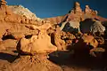 Le parc abrite des milliers de hoodoos, appelés localement goblins, qui sont des formations rocheuses en forme de champignons, certains faisant plusieurs mètres. Les formes spécifiques de ces roches résultent d'une couche de roche résistante à l'érosion sur un grès relativement plus tendre. Les roches sableuses d'où sont issues les hoodoos ont été déposées à l'ère Jurassique il y a 170 millions d'années[3]. Le parc d'État de Goblin Valley et le parc national de Bryce Canyon, également dans l'Utah, à environ 310 km au sud-ouest, comptent parmi les plus grandes concentrations de hoodoos au monde. La maigre flore comprend de l'Ephedra, du chardon de Russie et divers cactus, ainsi que des genévriers et des pins pinyon à des altitudes plus élevées[4]. La faune inclut des lièvres, des scorpions, des rats kangourous, des antilopes américaines, des renards nains, des serpents à sonnettes et des coyotes[4].