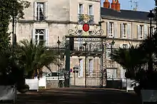 L'entrée est encore ornée d'une grille en fer forgé ornée des armoiries du comte.