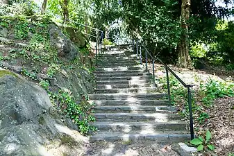 De l'autre côté de la rue des Dervallières, en aval de la Chézine, sur sa rive gauche, le jardin d'enfants du parc de Procé est aménagé[7]. Au delà, le cours de la rivière forme ensuite une autre promenade avant de passer en tunnel près de la place Canclaux.